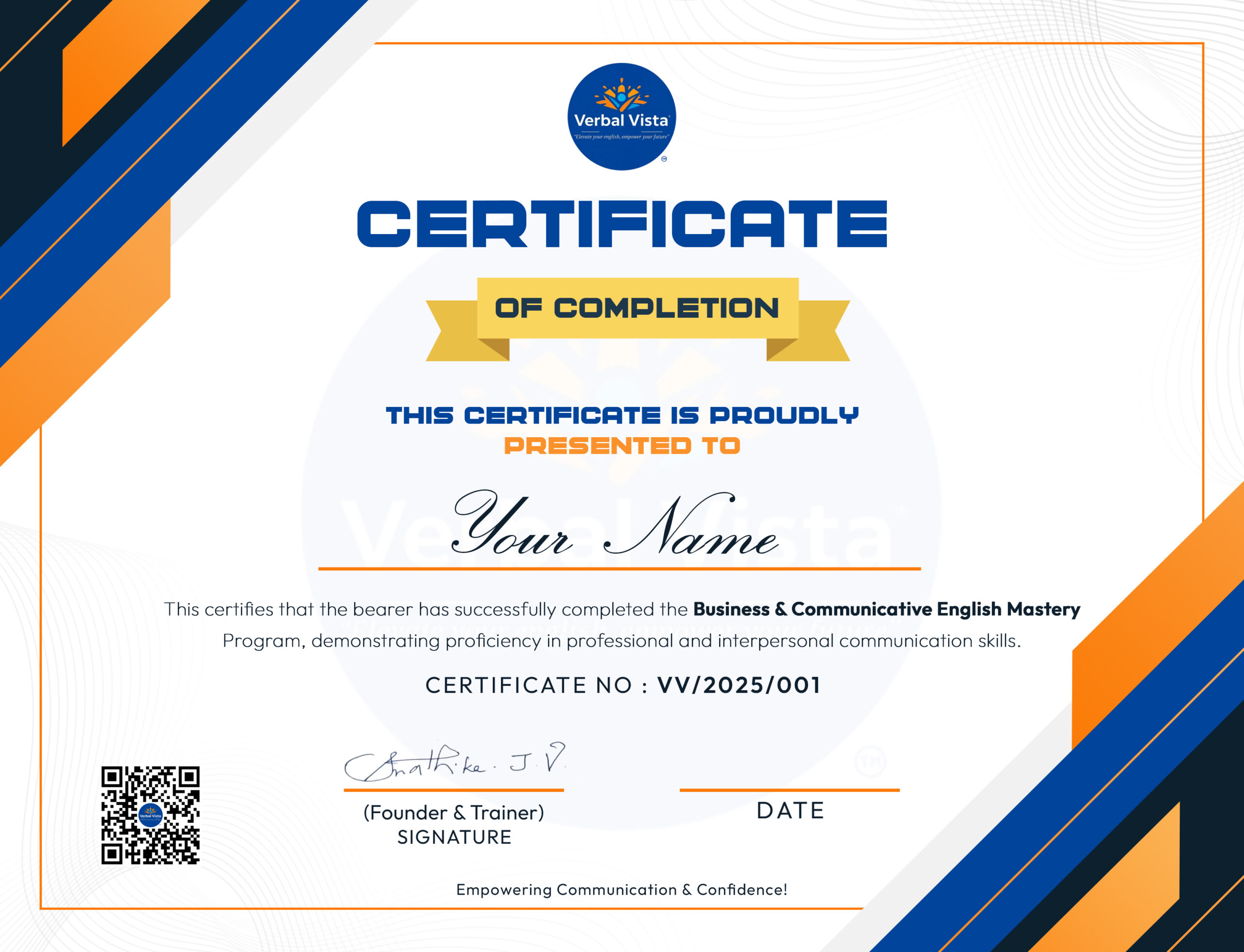 You will receive industry-recognized certifications from Verbal Vista, and for some programs, additional global certifications like Business English or Leadership Communication badges.